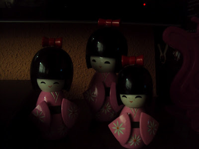 E ó, eu tb tenho Kokeshis , amoooo...as minhas são vermelhas.Agora preciso achar as Matrioskas, tá difícil.:((