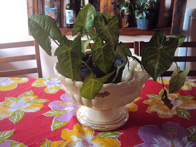 Agora ela alegra a minha mesa..improvisei uma plantinha.