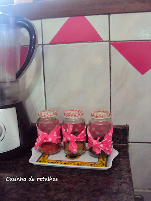 Gostei dos potes com tecidinhos, amo isso!=]
